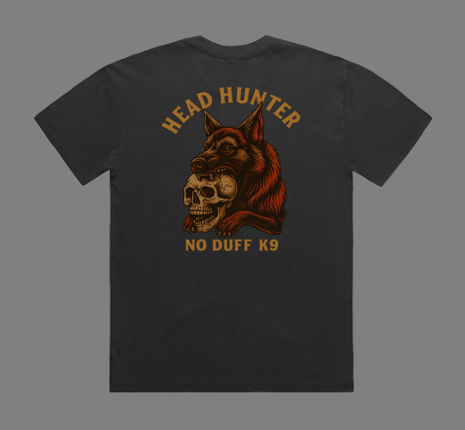 The “Head Hunter” tee isn’t made for the soft or the safe. It’s built for the handlers, the night hunters, the ones who know the dog on the end of the line is more savage than saint.